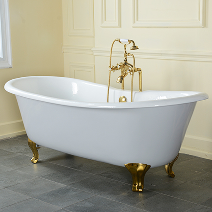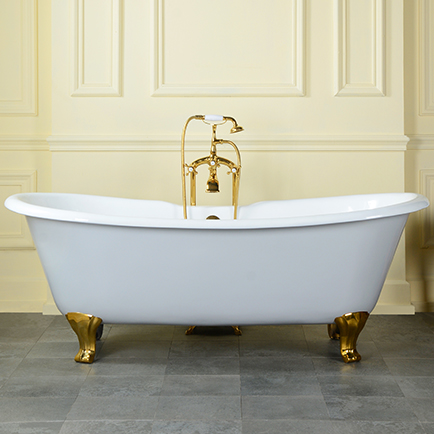 This 72" new designer cast iron double slipper freestanding tub made from the highest quality castings and finished with a vitreous enamel internal coating.