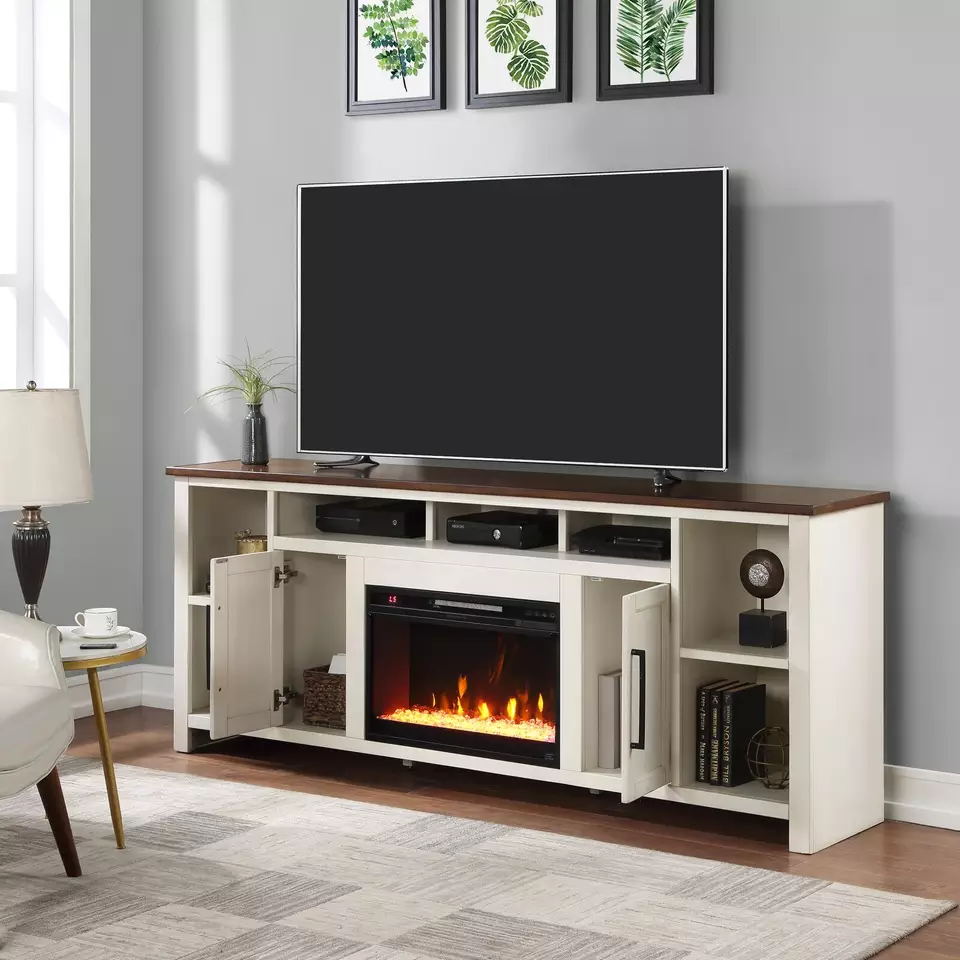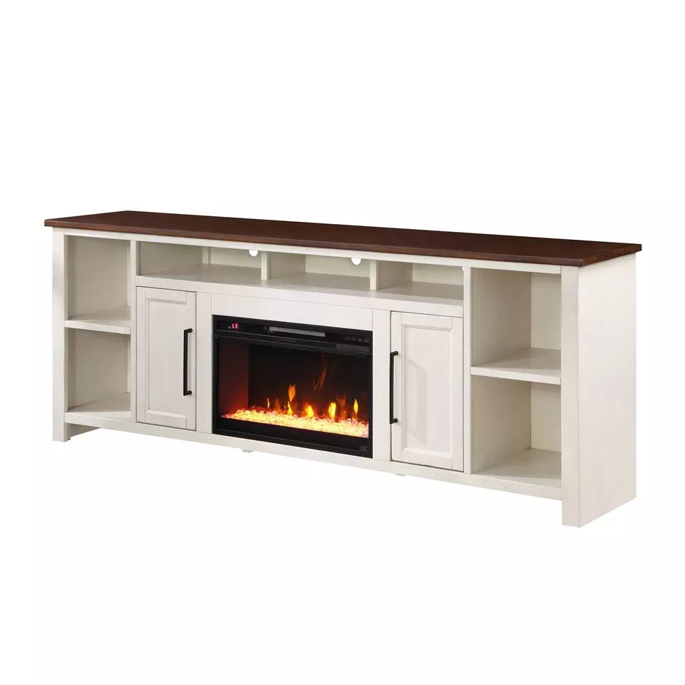 TV Stand Walnut and White with Fireplace