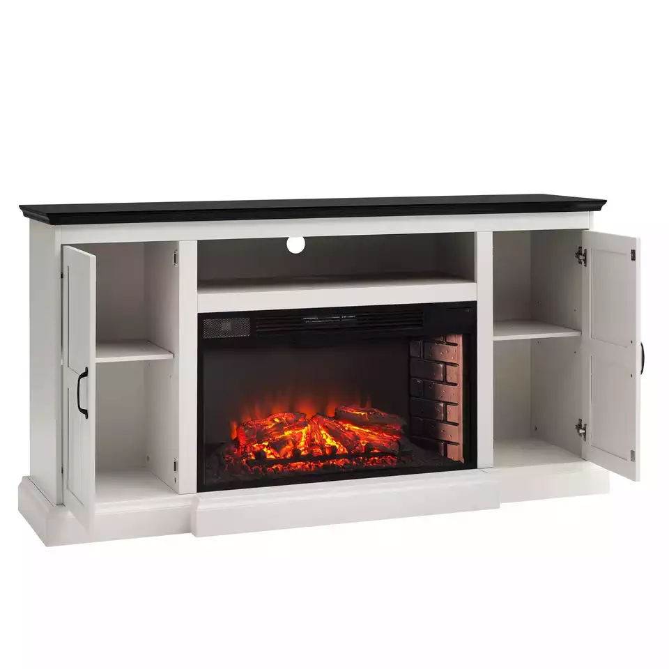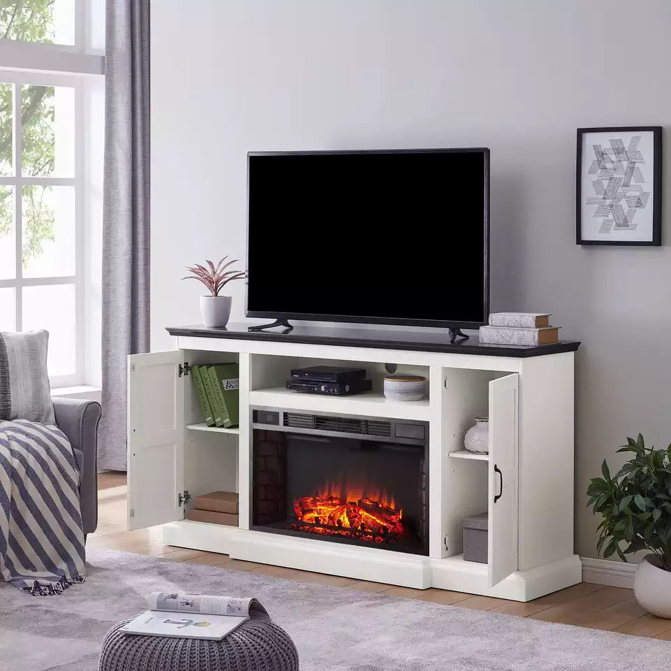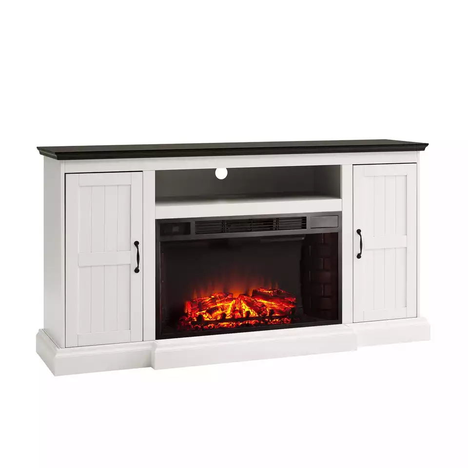 Farmhouse White Transitional White Wood Electric Fireplace