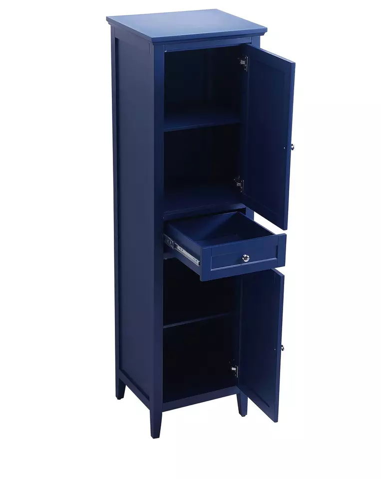 Product Name | HD-5239 Wooden blue standing linen storage cabinet | Color/Size | 73'' H x 21'' W x 18'' D Or customized | MOQ | 1 set | Hardware | DTC/BLUM soft-close hinges and sliders, A wide selection of handles and knobs | Features | * 2 Door(s) * 1 Drawer(s) * 4 Shelf/Shelves | Warranty | 1 year Limited Manufacturer | Materials: