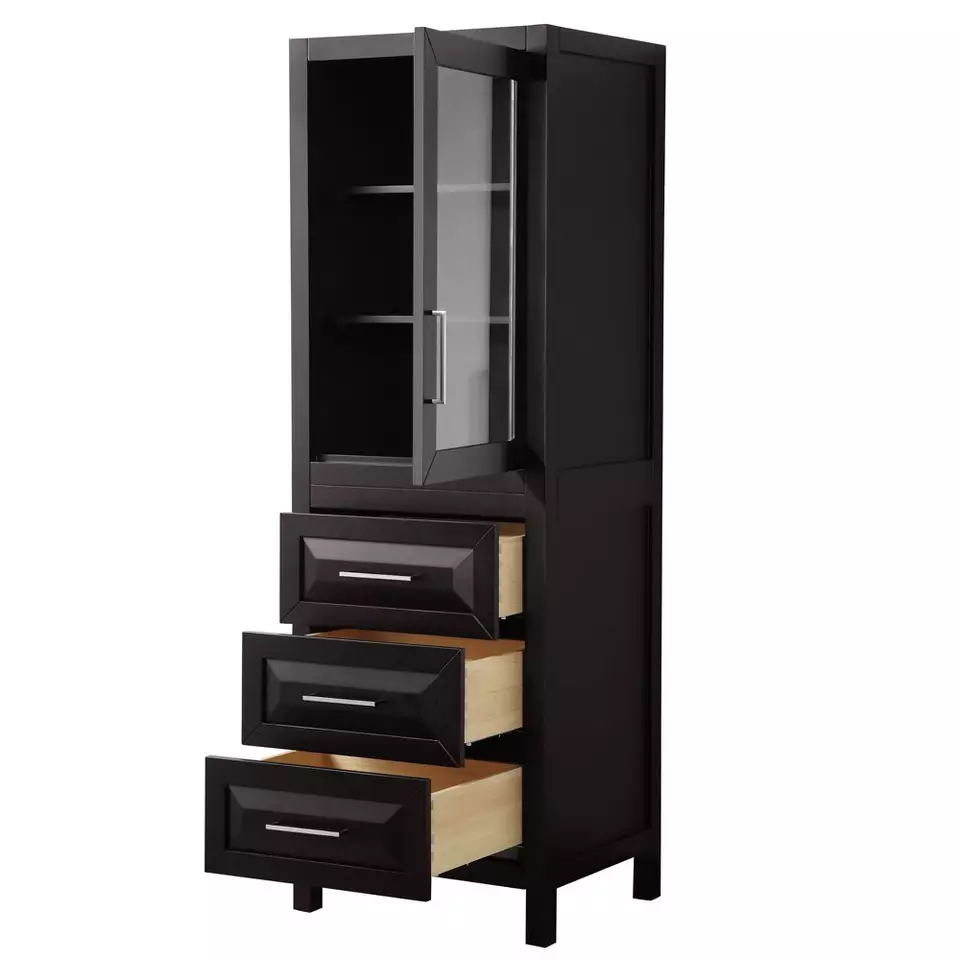 cabinet space, the fully extending drawers are dovetail construction, and chrome detailing completes the look.