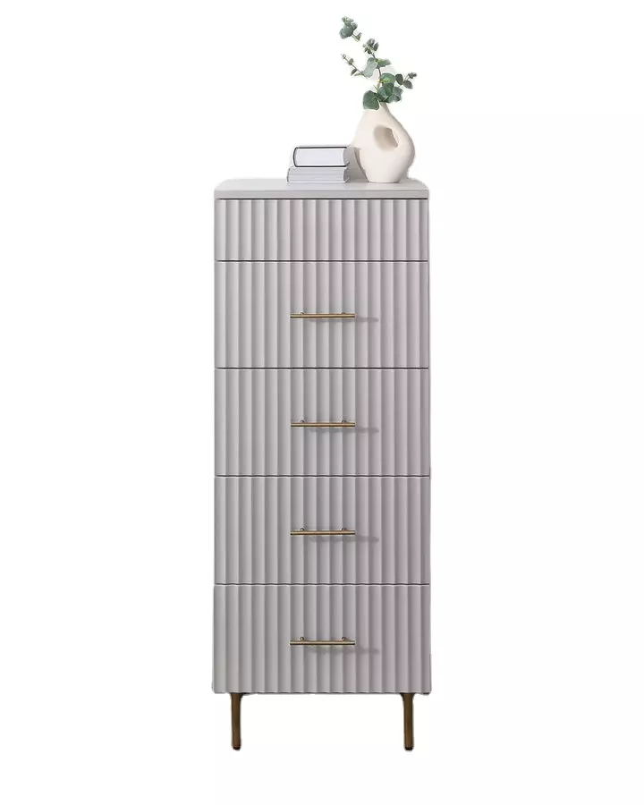 Living Room Cabinet Tallboy With Five Drawer In Grey